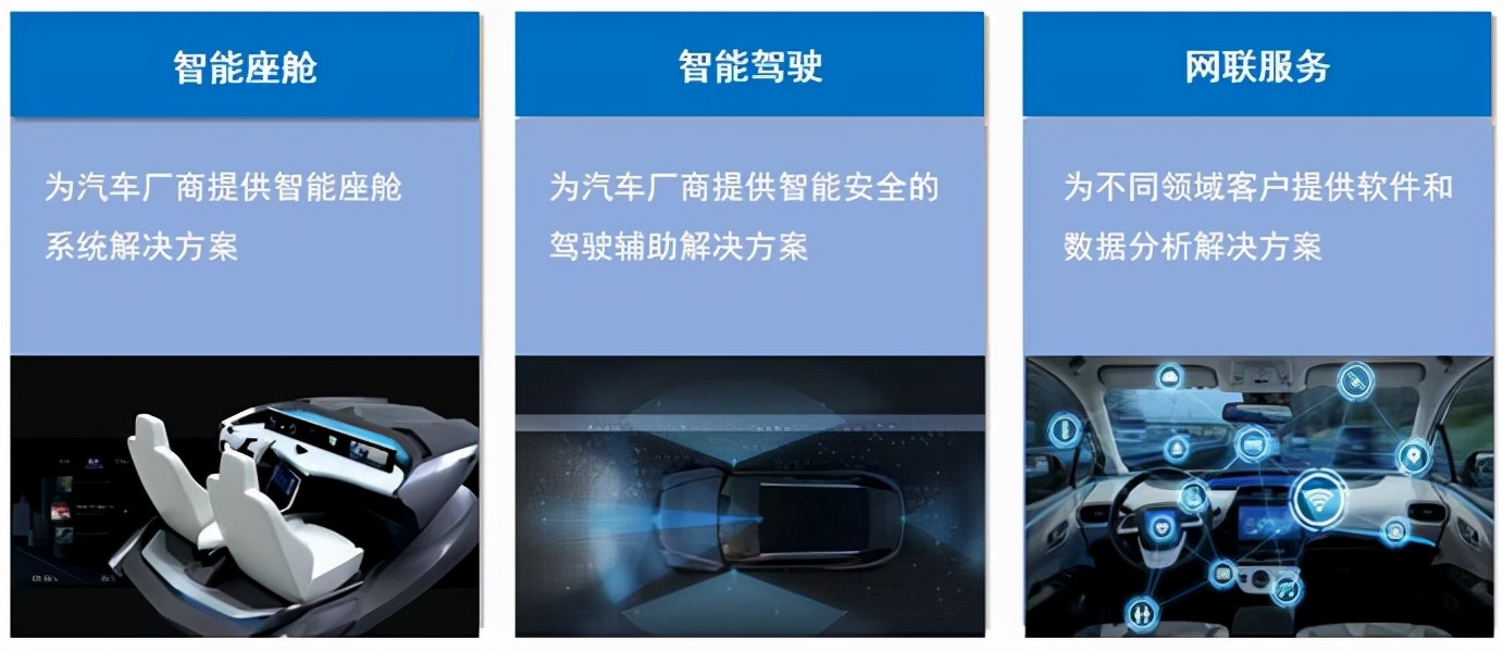 经过多次对组织架构、战略部署的深化升级,现将公司产品聚焦于智能座舱、智能驾驶、网联服务三大业务群,提供以人为本、万物互联、智能高效的整体出行方案。