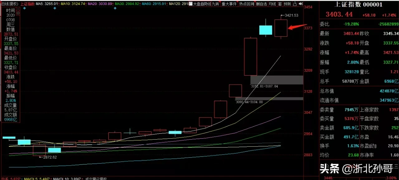 但是行情非常良性,下午指数先是冲高回落,但是随着光大证券的上板稳定金融筹码,大屁股中信证券、东方财富、中国人寿都尾随上板,行情真的超预期的好,这个时候就啥都不要想,跟随就是了。