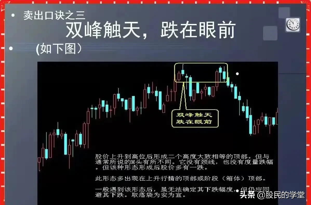个股顶部的形态,它都是有预兆性的 ,主力在个股拉高后,开始出逃迹象,最终都会反应在个股形态之上。那它想要全身而退,在出货期间,成交量、换手率上,都能展现得无声无息,但在个股出现顶部期间,主力不再护盘,快速撤离,那K线信号就极为明显了。尤其是下面第八点。我总结了很多的一些顶部信号,供大家参考。熟记这些信号,在介入股票和出货都会有很大的帮助,操作技巧上记住:
