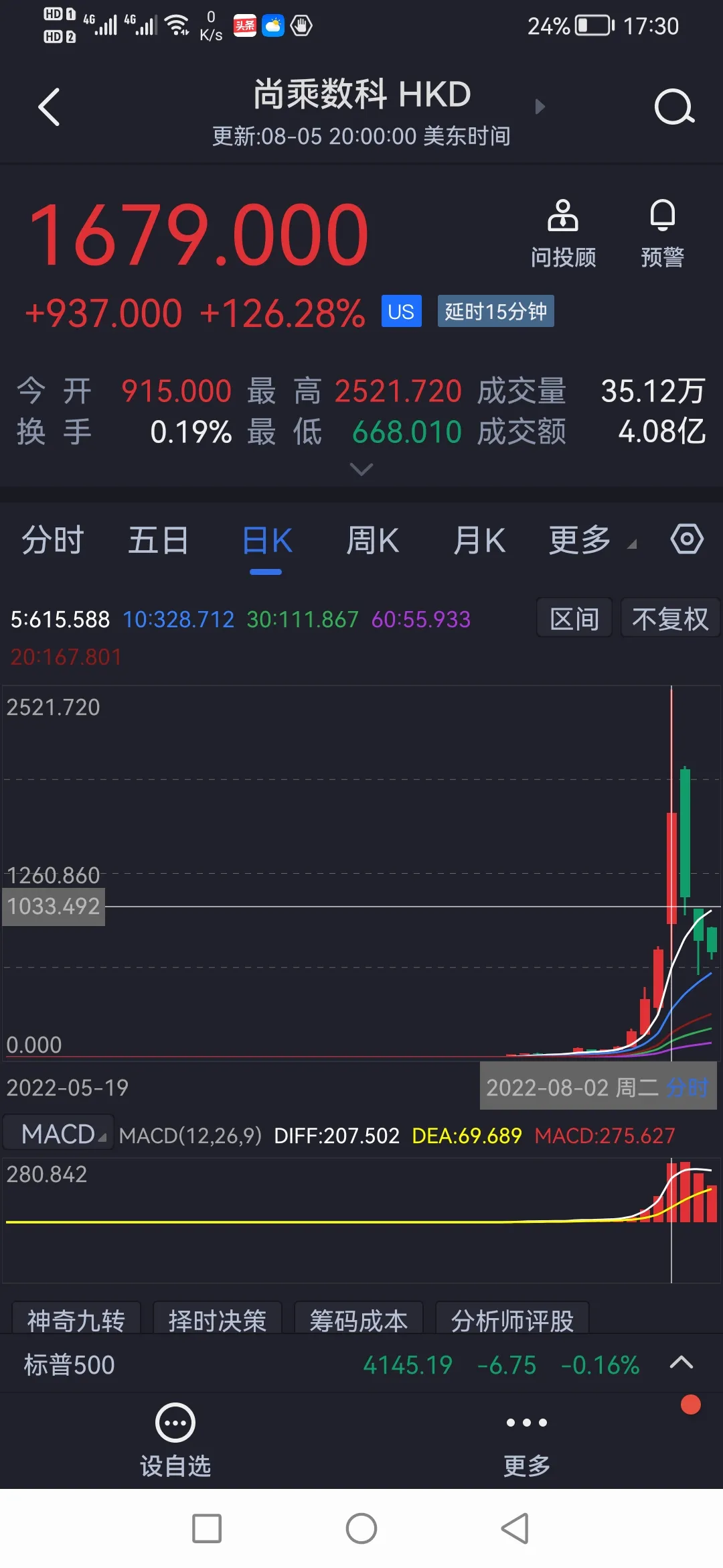 就是这么一只并不起眼的股票,在随后的几天内迅速飙升。在8月2日时达到2521元的最高价,现在只有721元了。